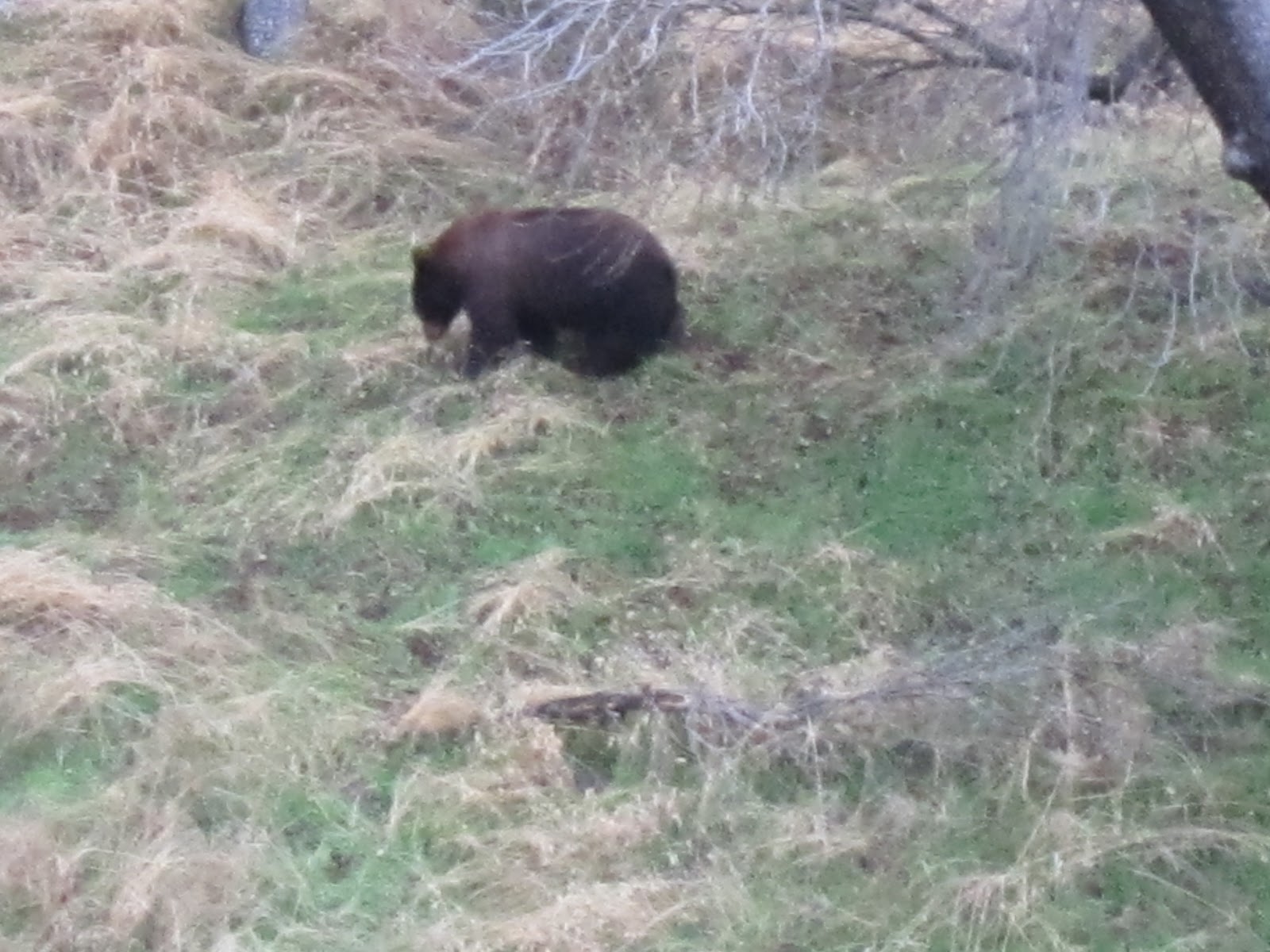 So, okay, no panic, but the crows convinced Joseph. I got back into the car in a big hurry, having refused to go further down that trail. Bear sign, recent, area deserted, crows sounding the alarm to show everyone where the bear was—I knew it was his time, not ours, and after all, it would be dark very soon and very fast, and a lot colder.
