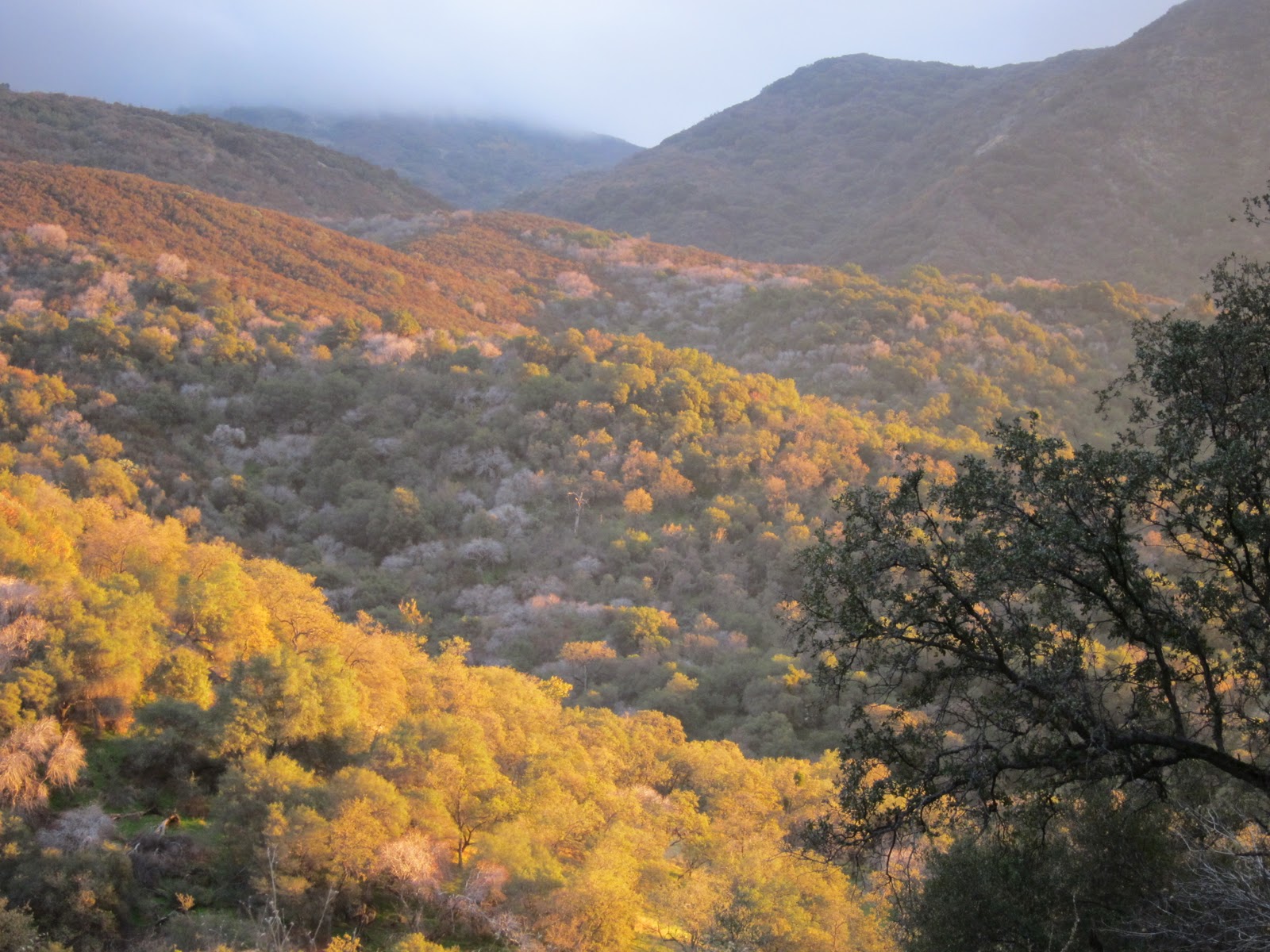 As we drove lower in altitude, the fog stayed above us and more of the trees became deciduous, beautiful in their autumn yellows.