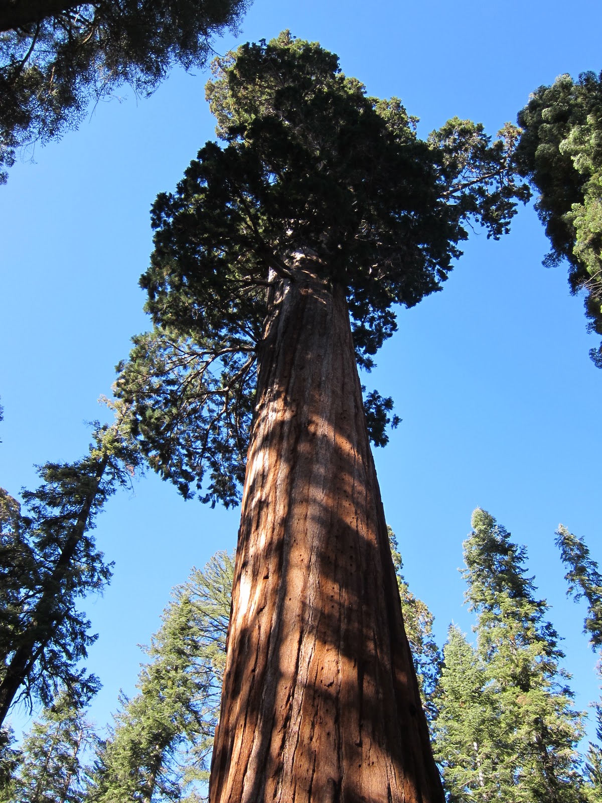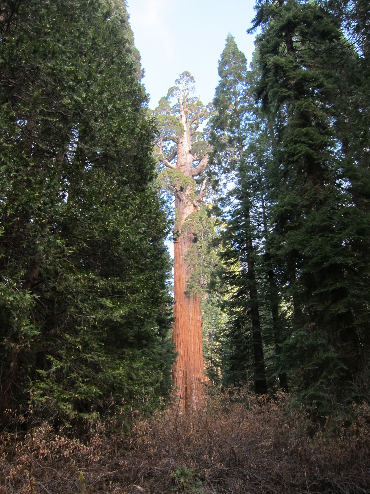 General Sherman is not the tallest, or widest, or oldest tree on earth, but according to Wikipedia, “With a height of 83.8 metres (275 ft), a diameter of 7.7 metres (25 ft), an estimated bole volume of 1,487 cubic metres (52,513 cu ft), and an estimated age of 2,300 – 2,700 years, it is however among the tallest, widest and longest-lived of all trees on the planet.”
