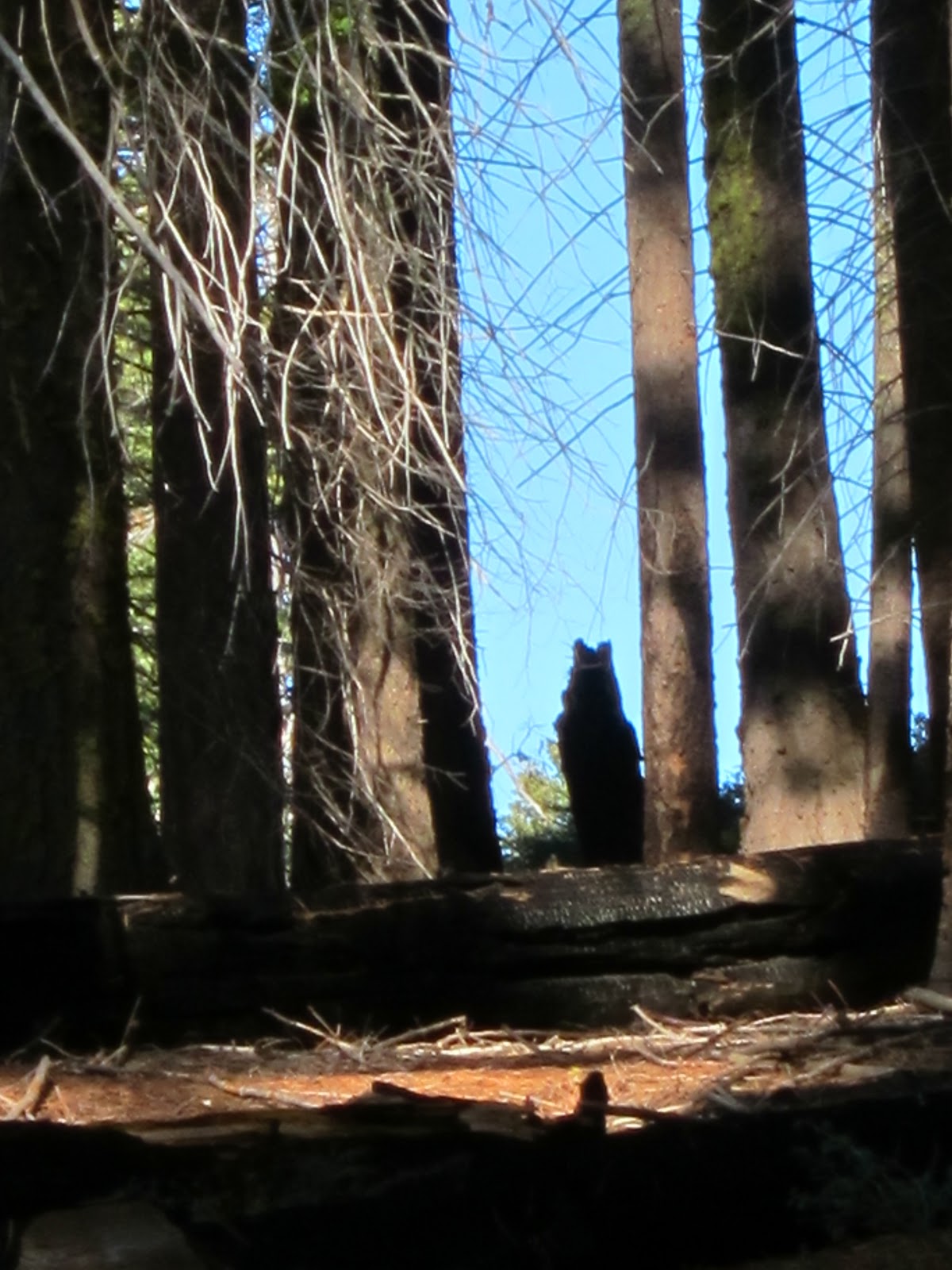 Okay, so most of you probably realize it's nothing more than a burned-out stump. But it was the first test and I passed! I didn’t scream, run, or panic. I simply sucked in my breath a little until I could look and determine that it was absolutely static and just a trick of perspective. But it didn’t do anything to improve my nervousness.