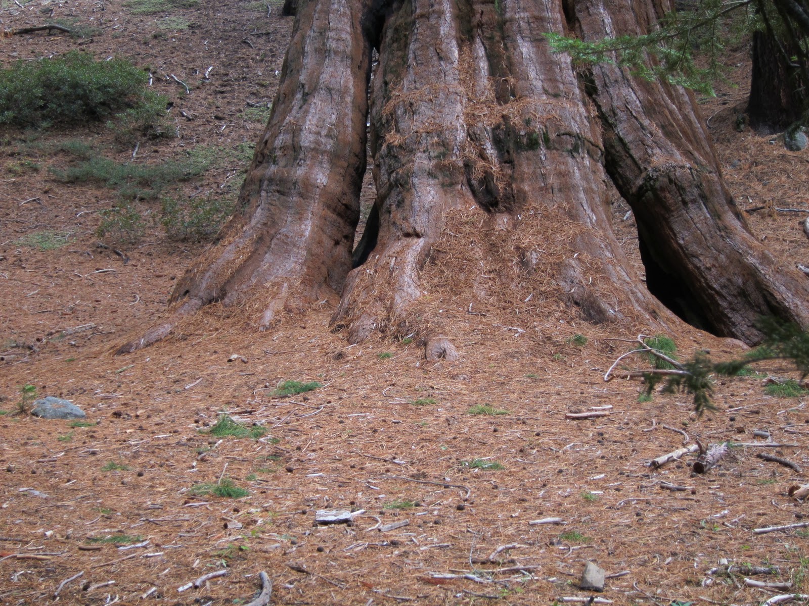Further the hillside trail, I thought I saw another log freshly scraped by a bear, but human boot prints all around looked pretty guilty. Trying to see just how soft the sequoia wood really is? But we made it safely back to the parking lot and turned sadly for home. Hard to leave this incredible forest, bears or no bears.